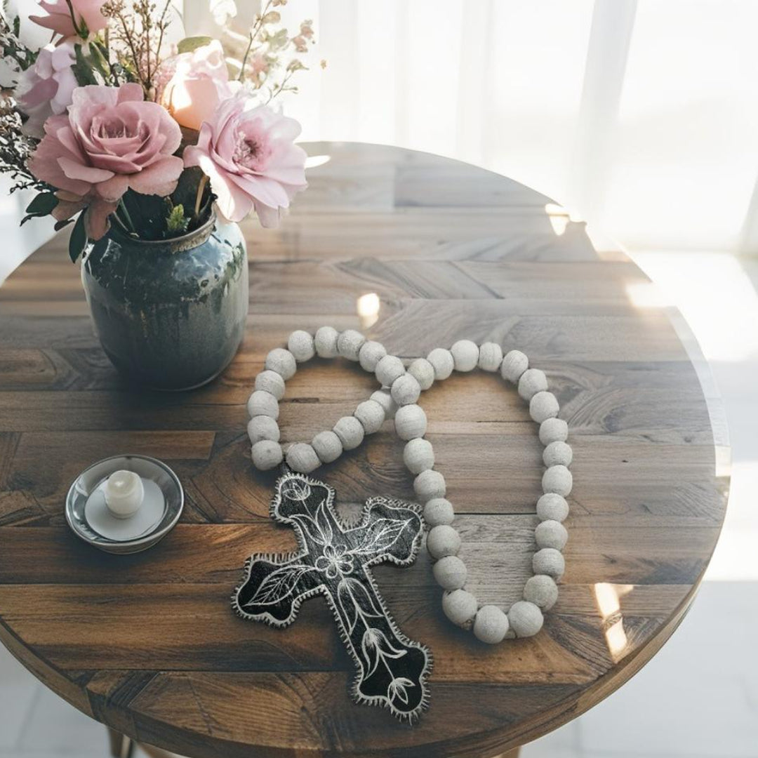 Handcrafted Cross with Beaded ‘Necklace’ 13x2x65cm